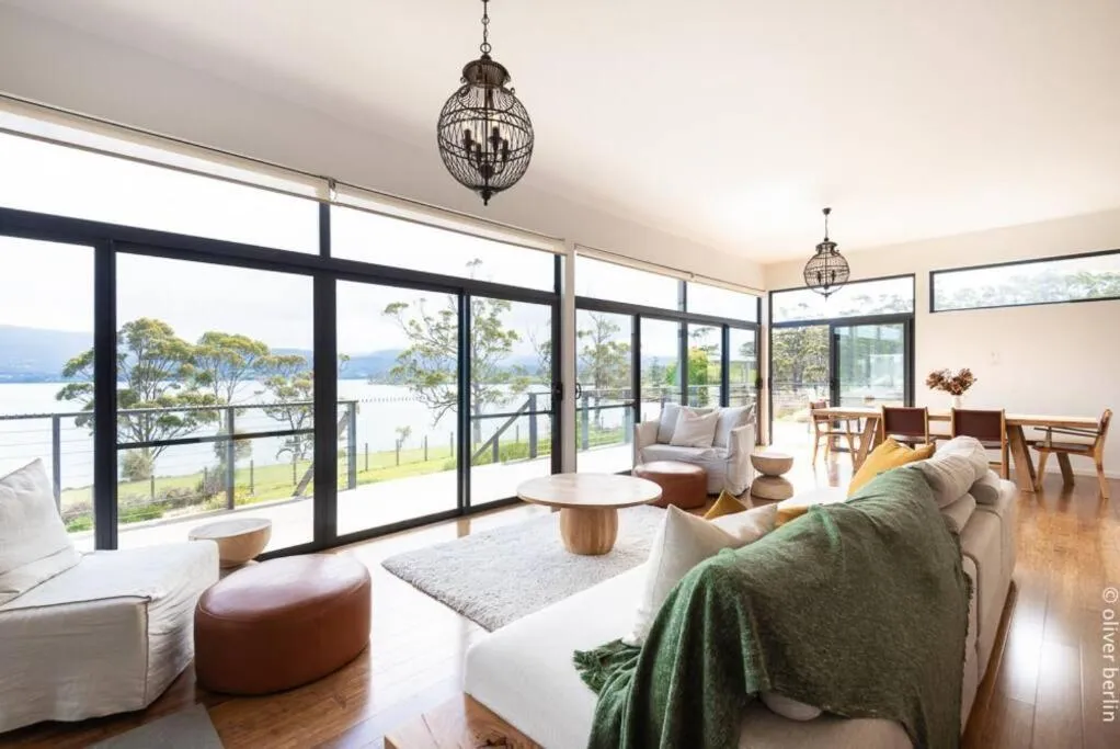 Featuring 6 metre high double glazed windows to capture the stunning views of the water and rural vistas, Peppermint Ridge Retreat offers accommodation in Woodbridge with free private parking.