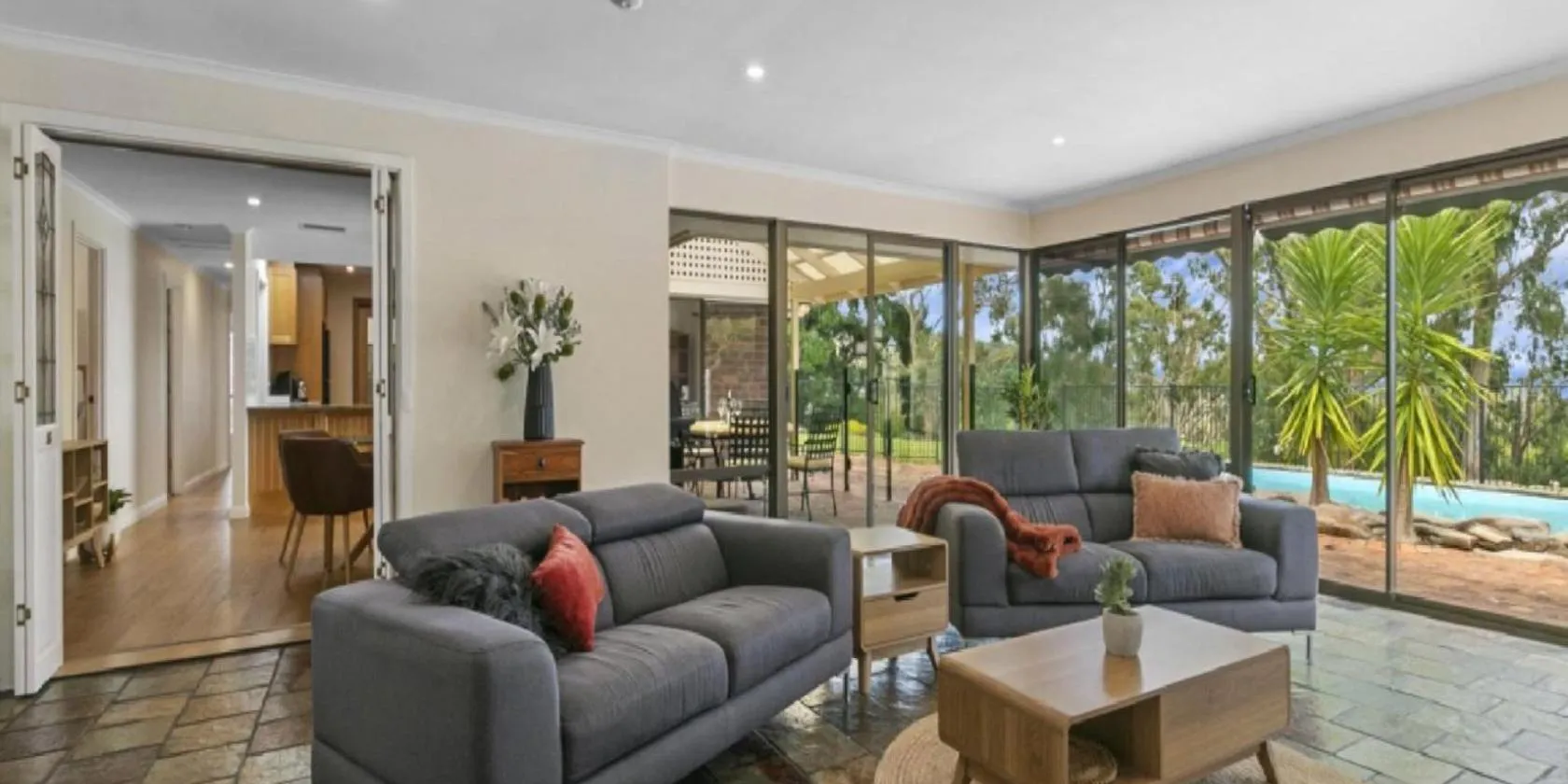 庭の景色を望むHerrings House, an iconic designer nature retreatはWillungaにある宿泊施設で、無料WiFiを提供しています。この別荘では、専用プール、庭、無料専用駐車場を提供しています。 ベッドルーム4室、薄型テレビ、キッチン(冷蔵庫、食器洗い機付)が備わるエアコン付きの別荘です。