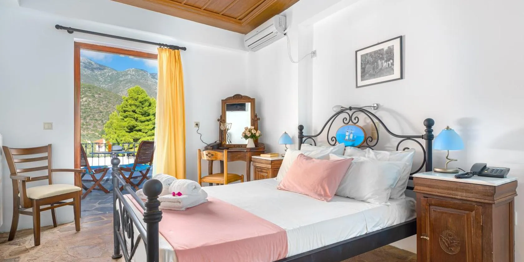 In the seaside Poulithra Village, just 170 metres from a shingle beach, lies the traditional Byzantinon Hotel. It offers accommodation with Myrtoan Sea views.