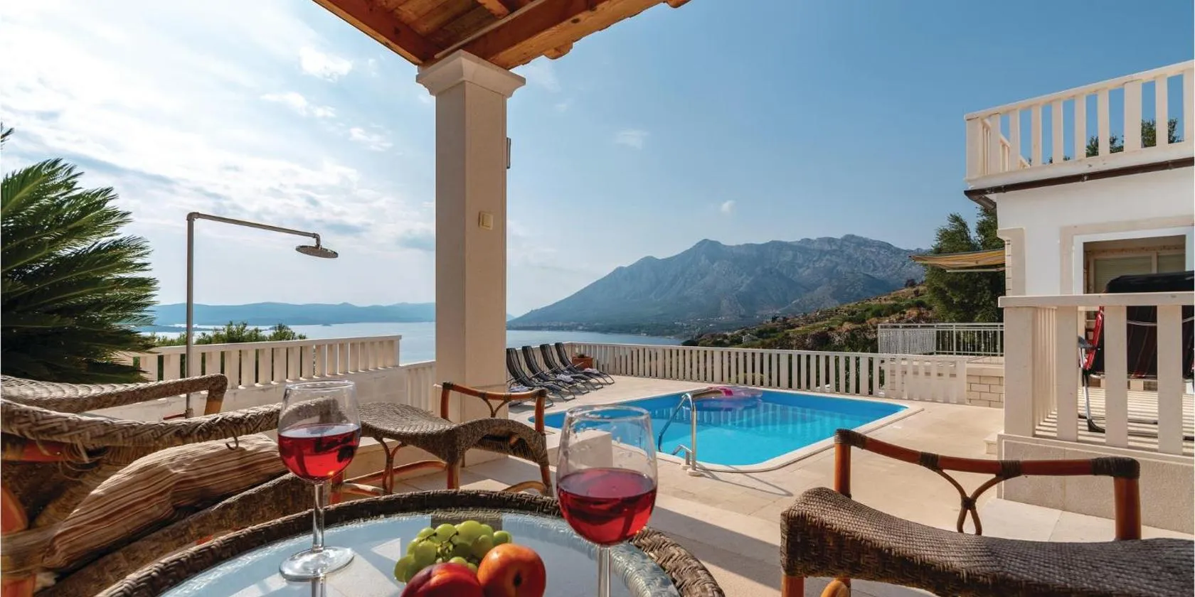 オレビックにあるUnforgettable Orebic Retreat 8 Bedrooms Villa Peljesac Majestic Tranquil Oasis With Private Pool & Breathtaking Adriatic Viewsは、海の景色を望むエアコン付きのユニット(専用プール、パティオ付)を提供しています。