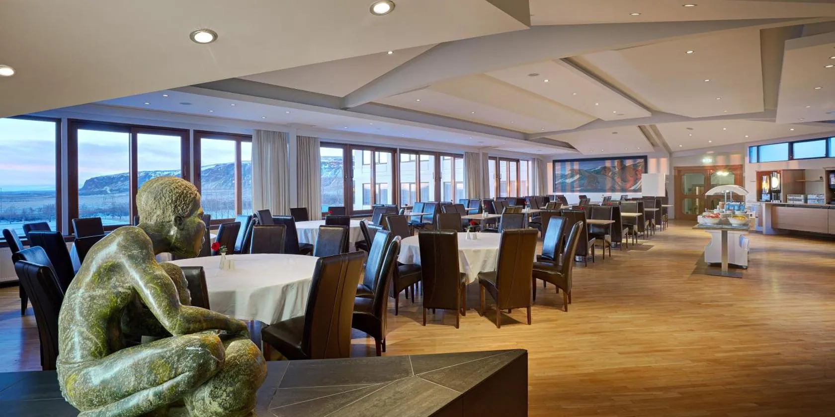 Found by bubbling geothermal springs in Hveragerdi, this hotel offers an outdoor pool and 2 hot tubs and sauna. All rooms include bathrobes, slippers and a 32-inch flat-screen TV. Wi-Fi is free.