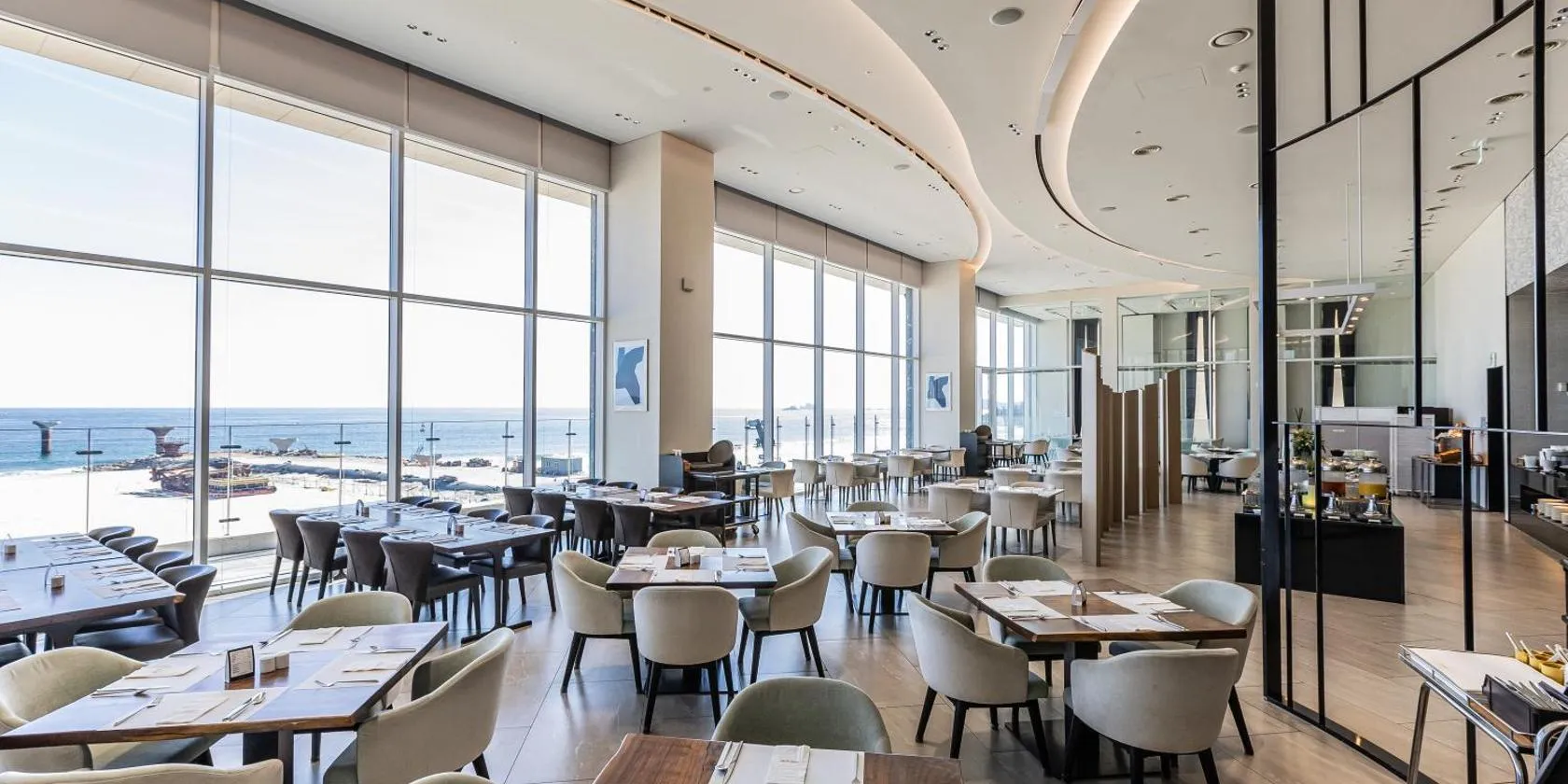 固城郡にあるRenebleu by Sol Beachは雪岳ウォーターピアから20kmで、海の景色が望めます。5つ星のホテルで、エアコン付きのお部屋(専用バスルーム、無料WiFi付)を提供しています。禁煙の宿泊施設で、ソンジホビーチから徒歩数分の場所にあります。 Renebleu by Sol Beachのお部屋にはポットが備わります。