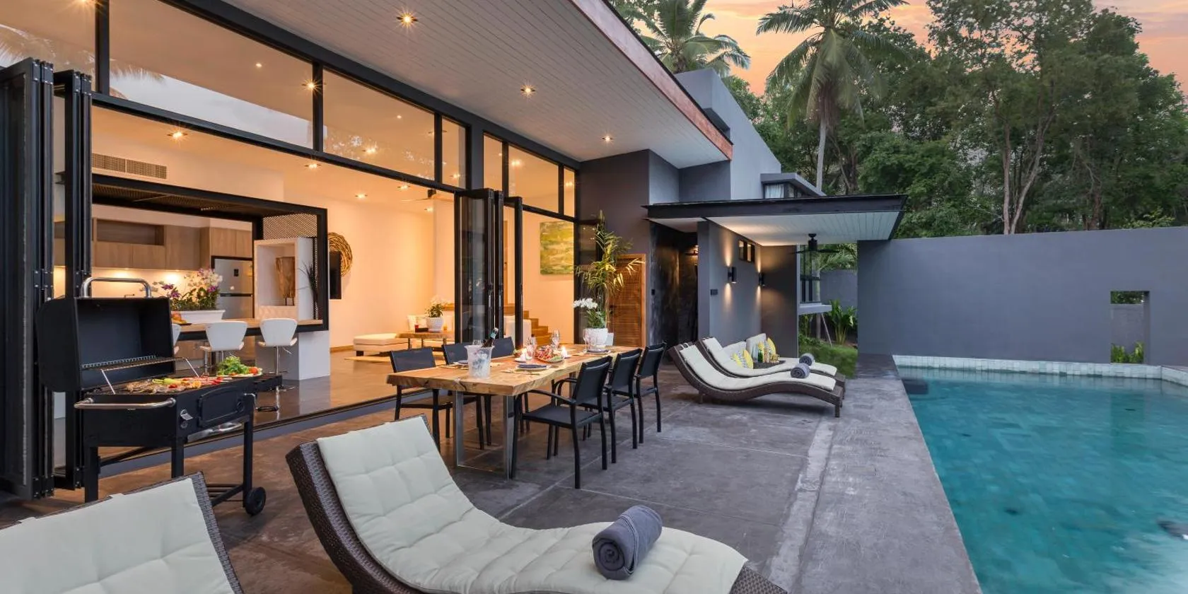 Modern Sunset Sea House Lam Saiはヤオノイ島にある宿泊施設で、クロン・ジャークビーチまで2.2kmです。バルコニーと無料WiFiを提供するビーチフロントの宿泊施設です。 海の景色を望むテラスのあるエアコン付きの別荘で、ベッドルーム1室、設備の整ったキッチンがあります。この別荘にはタオルとベッドリネンを用意しています。