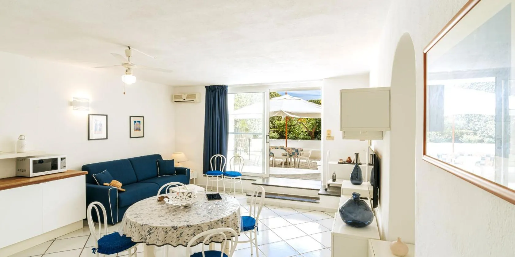 Ischia Blu Resortは本土へ乗り継ぎ可能なフェリー港の近くにあり、イスキア・ポルトにある設備の整った専用ビーチまで直接アクセスできます。明るく広々としたスタジオおよびアパートメントを提供し、そのほとんどからは海の景色を見渡せます。無料WiFiを利用できます。 お部屋にはエアコン、薄型衛星テレビが備わっています。タイルフロアの伝統的なスタイルで、木製家具が備わっています。