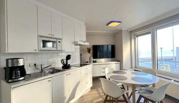 Set in Oostduinkerke in the West-Flanders region, Skyline suite 2 has a balcony. This beachfront property offers access to a terrace.