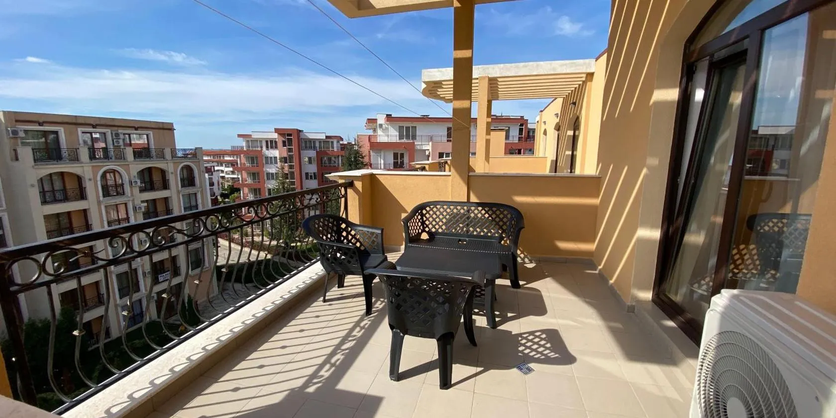 スヴェティ・ヴラスにあるRoof top sea view apartment 167,2ložnice,4-7 osobは、市街の景色を望むユニット(無料WiFi利用可)、季節限定の屋外プール、庭、テラスを提供しています。このアパートメントにはバルコニーがあり、周辺エリアではハイキング、フィッシング、シュノーケリングなどのアクティビティを楽しめます。