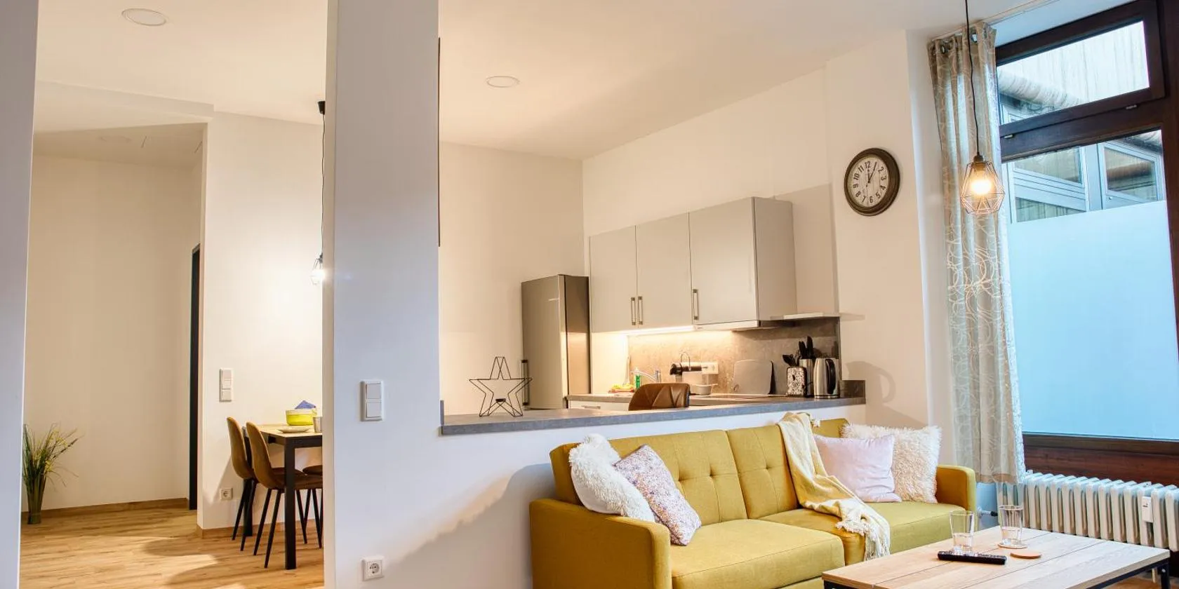 Very cozy and comfortable flat. After renovation. All furnishing is new. Our group was very sad, that we had to leave it:) Good place for stay, visit and see old and beautiful Amberg and the region. We recommend it!