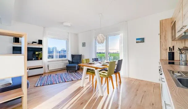 Wolke 7 - Mondはアムラムバンク灯台から22km以内、エムデン美術館から22km以内で、無料WiFiとテラスを提供しています。オットー・フースから22kmの宿泊施設で、庭と無料専用駐車場を提供しています。 ベッドルーム1室、リビングルーム、設備の整ったキッチン(冷蔵庫、コーヒーメーカー付)、バスルーム(シャワー、ヘアドライヤー付)1室が備わるアパートメントです。
