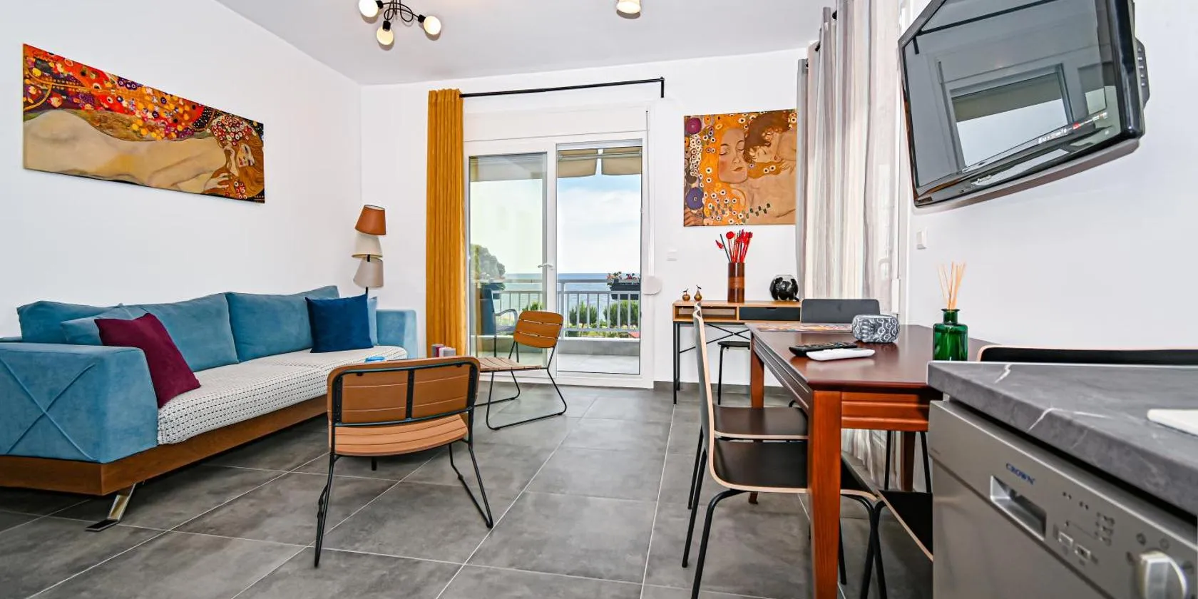 海の景色を望むE & D family apartment by the seaは庭とバルコニーを提供する宿泊施設で、カリヴェスビーチまで約徒歩4分です。このビーチフロントの宿泊施設では、テラス、無料専用駐車場、無料WiFiを提供しています。