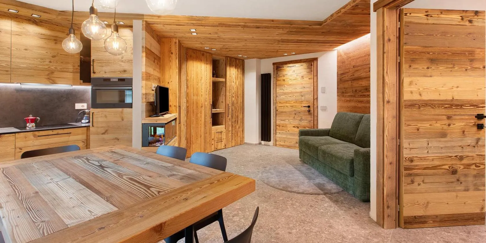The apartment is wonderful, the orientation is perfect, the sun shines all day long. From every window you can see the mountains, the stream, the herd of grazing cows. The local shops are close and the service is good. An excellent restaurant is a short walk away. The internal distribution is very convenient. The connection between the terrace and the garden is fantastic. We went cycling, we visited wonderful places. The kitchen is modern and fully equipped. The sauna and jacuzzi in the garden were a great experience in the evenings.