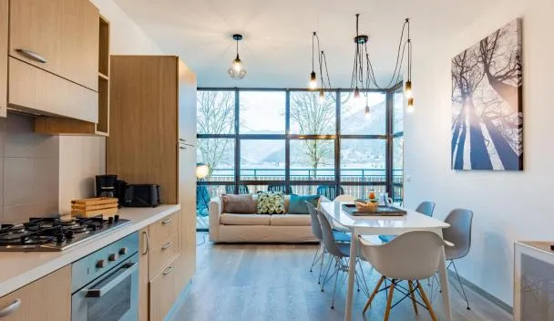リーヴァ・デル・ガルダにある1Dest - Waterfall & Poolは季節限定の屋外プール、無料WiFi付きのユニット、無料専用駐車場を提供しています。 各ユニットには設備の整ったキッチン(ダイニングテーブル付)、薄型テレビ、専用バスルーム(シャワー、無料バスアメニティ付)が備わります。一部のユニットには湖の景色を望むバルコニーおよび/またはパティオがあります。