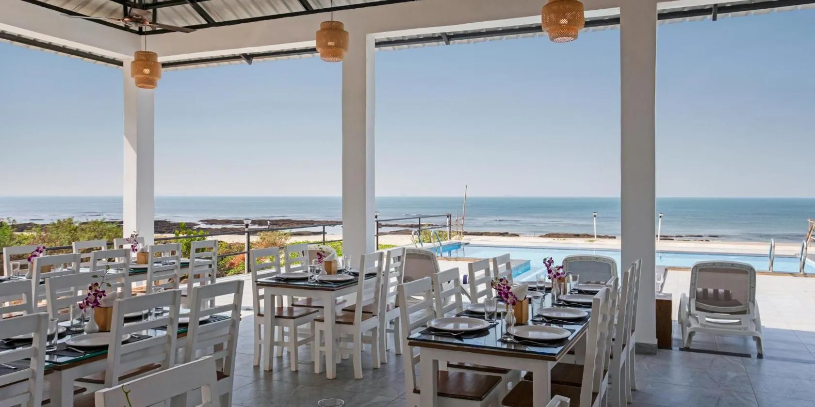 海の景色を望むOmkar Beach Resortはマルバンにある宿泊施設で、専用ビーチエリアとテラスを提供しています。敷地内の専用駐車場を提供しています。 Omkar Beach Resortではベジタリアンの朝食を楽しめます。 この宿泊施設からタラシルビーチまで徒歩数分です。マノハール・パリカル国際空港まで87kmです。