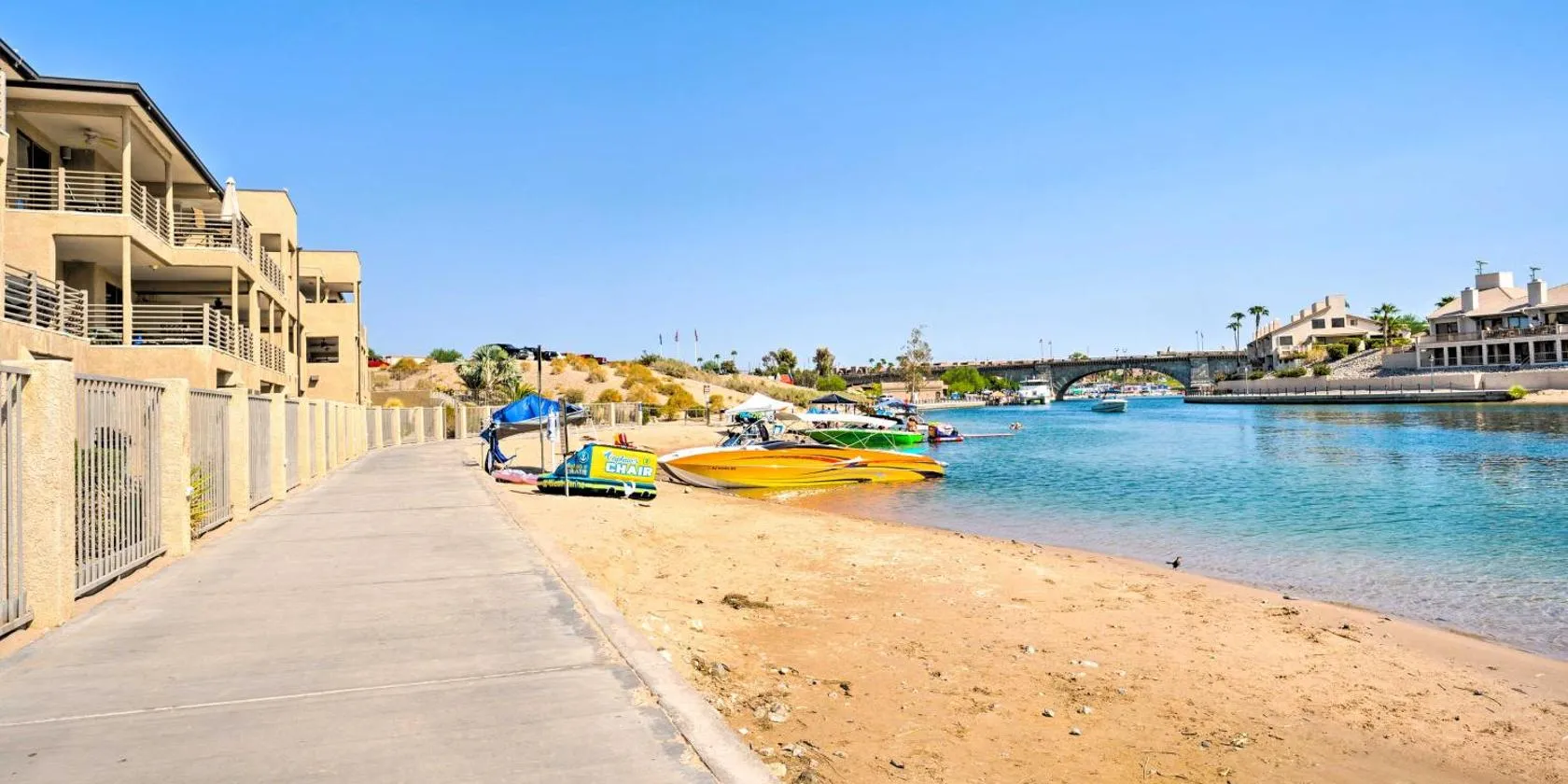 Located in Lake Havasu City, just 2.6 km from Windsor Beach, 1 Mi to London Bridge Condo with Pool Access provides beachfront accommodation with free WiFi.