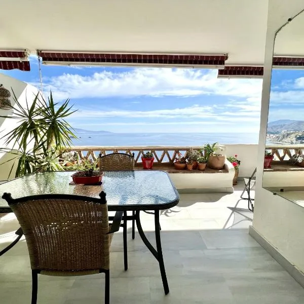 アンダルシア州のラ・エラドゥーラにあるPanamanian Blue Sea View Flatはパティオを提供しています。市街と海の景色を望むアパートメントで、無料WiFiも利用できます。 ベッドルーム3室、リビングルーム、設備の整ったキッチン(冷蔵庫、コーヒーメーカー付)、バスルーム(シャワー、ヘアドライヤー付)2室が備わるエアコン付きのアパートメントです。