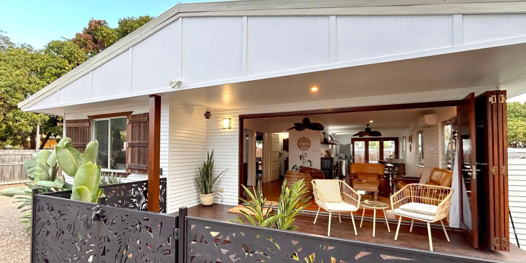 庭の景色を望むLarge and Private Executive Home - Secure parking for boatsはテラスとパティオを提供する宿泊施設で、ハービー・ベイ・ゴルフ&カントリークラブまで約3.7kmです。ハービーベイ・ヒストリカル・ビレッジ・ミュージアムから5.2kmの場所にあるエアコン付きの宿泊施設で、無料WiFiと敷地内の専用駐車場を提供しています。