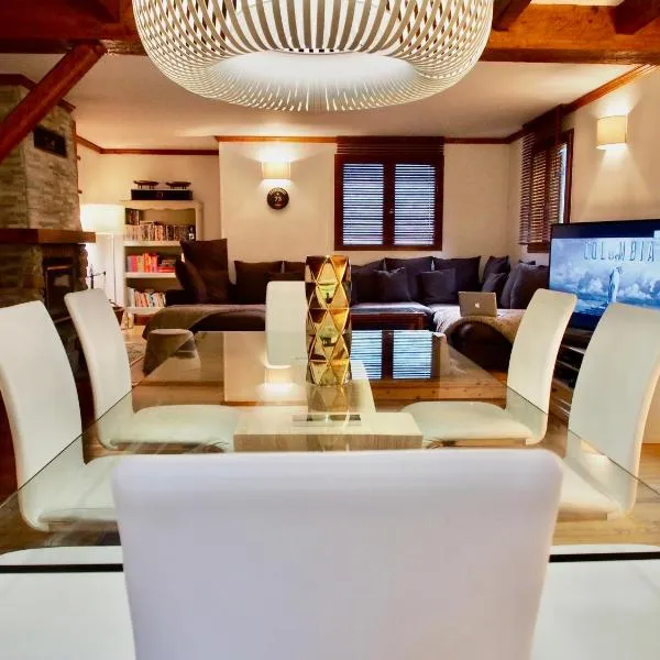 Offering a garden and mountain view, Appart Duplex Chalet plein Sud is situated in Feissons-sur-Salins, 45 km from Col de la Madeleine and 10 km from Casino des 3 Vallées Brides les Bains.