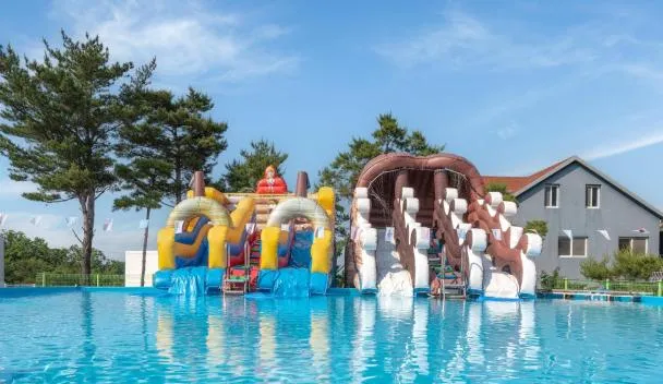 慶州市にあるGyeongju Tiamo Pensionはプール、庭、共用ラウンジ、無料WiFi付きのユニットを提供しており、プールの景色が望めます。敷地内の専用駐車場を提供しています。 Gyeongju Tiamo...
