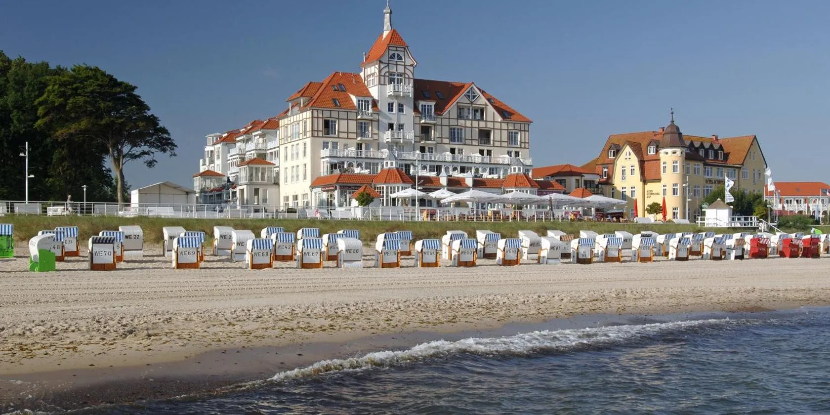 This historic hotel is a beautiful villa located directly on Kühlungsborn Beach on the Baltic Sea Coast.