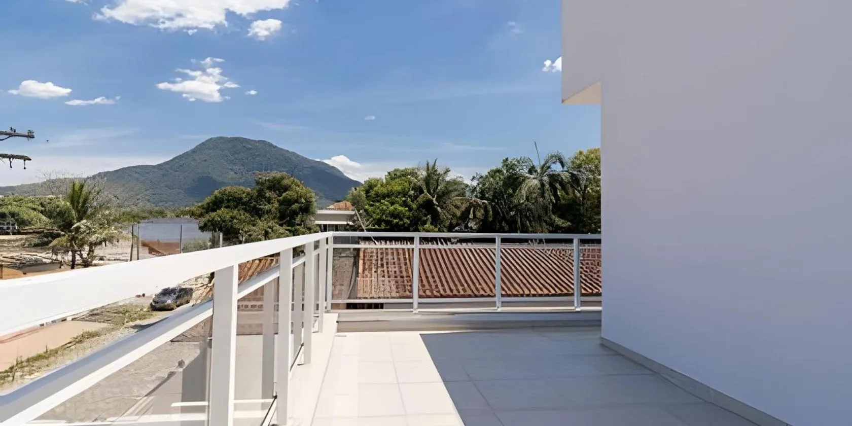市街の景色を望むCasa Para Hóspedes em Peruíbe - SPはペルイベにある宿泊施設で、無料WiFiを提供しています。セントロビーチから1km以内の宿泊施設で、庭と無料専用駐車場を提供しています。 バルコニー、ベッドルーム1室、リビングルーム、設備の整ったキッチン(冷蔵庫、オーブン付)が備わる別荘です。薄型テレビが備わります。
