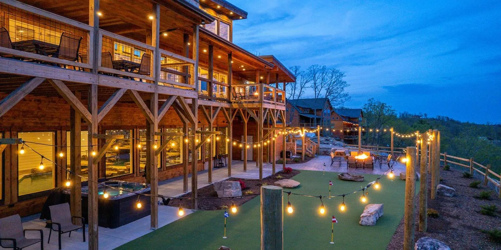セバービルにあるLuxury 12-Bedroom Cabin with Indoor Pool, Hot tub & Movie Theater, Sleeps 36は、山の景色を望むユニット(無料WiFi利用可)、共用ラウンジ、テラス、バーを提供しています。専用プールと無料専用駐車場を提供しています。...