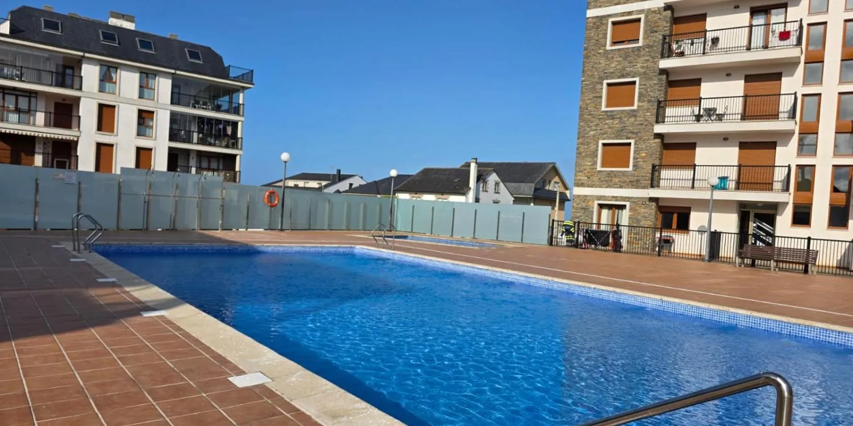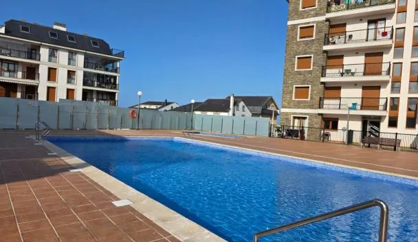ガリシア州のフォスにあるApartamento centro de Foz con piscinaはパティオを提供しています。専用プールと無料専用駐車場を提供しています。...