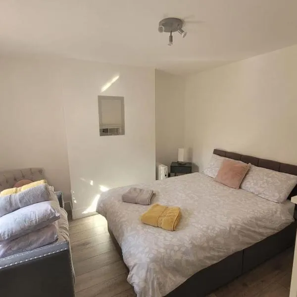 Brooklyn lodgeはマーゲイトにある宿泊施設で、グランビル・シアターまで7.1km、サンドイッチ駅まで16km、ディール城まで26kmです。ザ・ベイビーチから1km以内の場所にある宿泊施設で、無料WiFiと敷地内の専用駐車場を提供しています。 グラウンドフロアにある別荘で、ベッドルーム2室、設備の整ったキッチン(冷蔵庫、オーブン付)、リビングルーム、薄型テレビが備わります。