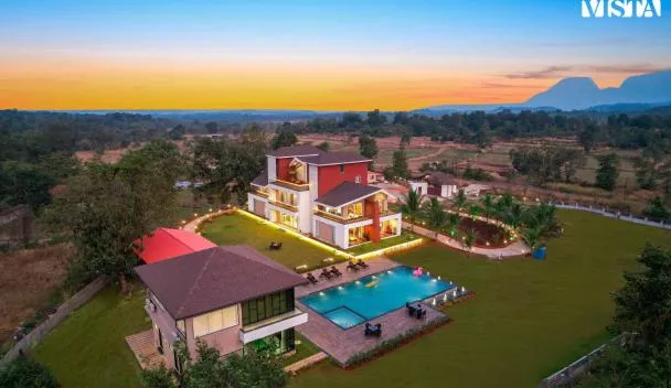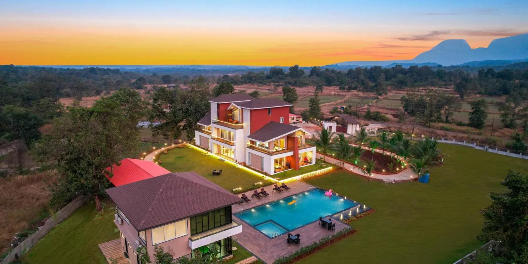 • カルジャットにあるEKOSTAY - Amanta Hills 7BHKは、山の景色を望むバルコニー、屋外プール、共用ラウンジを提供しています。近くにはカルジャット駅があり、Utsav Chowkまで38kmです。プールと庭の景色を望むヴィラで、無料WiFiも利用できます。