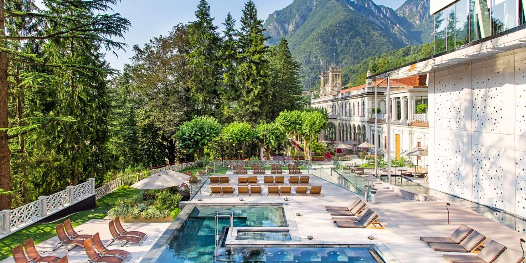 Conveniently located in the centre of San Pellegrino Terme, surrounded by a green landscape dotted with architectural Liberty-style village buildings, this elegant hotel offers all modern comforts.