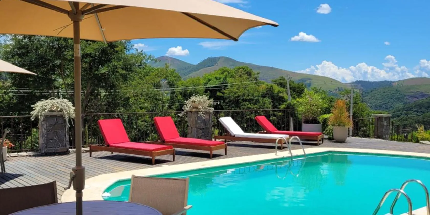 イタイパバにあるSanta Serra Itaipavaは、山と川の景色を望むテラス、屋外プール、サウナ、ハマムを提供しています。この別荘では、専用プール、庭、無料専用駐車場を提供しています。 ベッドルーム3室、リビングルーム、設備の整ったキッチン(冷蔵庫、コーヒーメーカー付)、バスルーム(シャワー、ヘアドライヤー付)4室が備わるエアコン付きの別荘です。