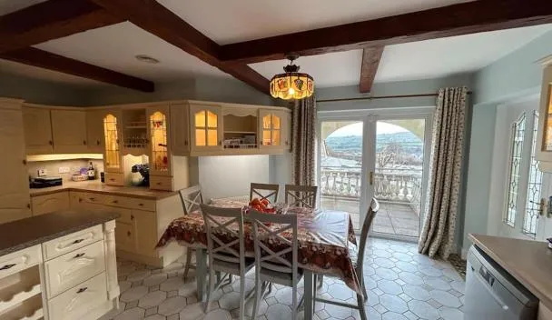 レタケニーにあるSerene Luxurious Haven with Sea Views Letterkenny Roomsは無料WiFi、庭、共用ラウンジ、テラスを提供しています。敷地内に専用駐車場があります。 ダイニングエリアとキッチン(冷蔵庫、オーブン、電子レンジ付)もあります。