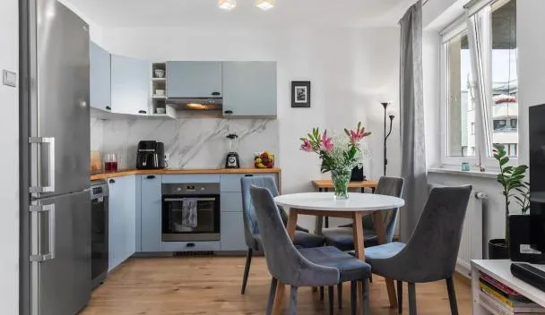 LUXURY APARTMENTS WILCZA 8 by Marta klimatyzacjaはラドムにあります。館内全域での無料WiFiを提供しています。 市街の景色を望むバルコニーのあるエアコン付きのアパートメントで、ベッドルーム1室、設備の整ったキッチンがあります。薄型テレビが備わります。 ラドム空港まで5kmです。