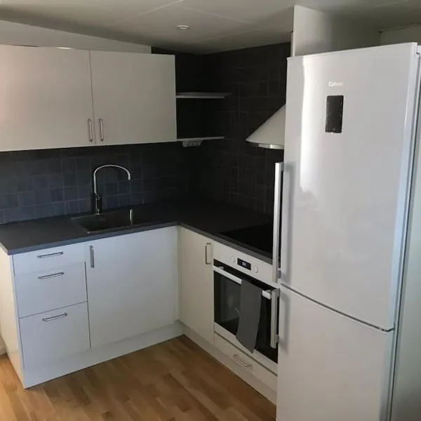 Mindre lägenhet med stora möjligheterはアリングソースにあり、ハスタバーデット・ギェーツケンビーチまで徒歩14分、ヴァッテンパラッツェットまで27km、スカンジナヴィアムまで47kmです。館内全域での無料WiFi、敷地内の専用駐車場を提供しています。 ベッドルームが1室あるアパートメントで、リビングルーム(薄型テレビ付)、設備の整ったキッチンが備わります。