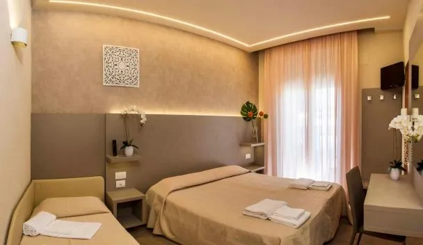 カットーリカビーチから徒歩1分のHotel Esperiaはカットーリカにある宿泊施設で、無料レンタル自転車、専用駐車場、庭、共用ラウンジを提供しています。1つ星のホテルで、無料WiFi、テラス、バーを提供しています。このホテルではファミリールームを提供しています。 Hotel...