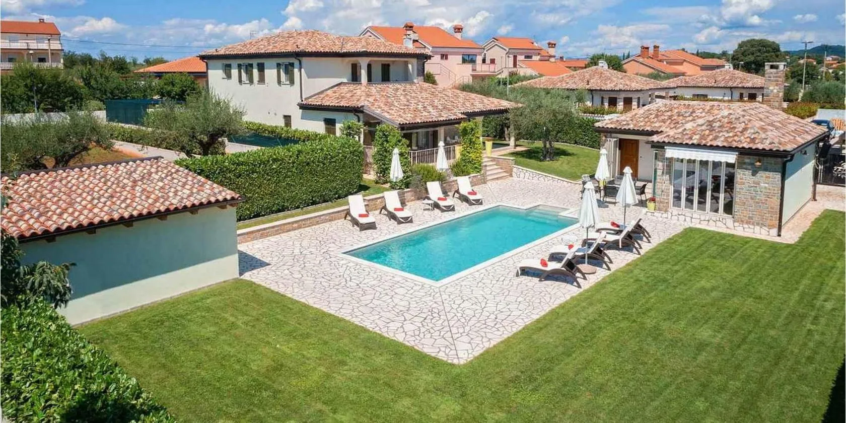 ブイェにあるHoliday Home Veronica by Interhomeはアクアパーク・イストラランディアから13km以内、サン・ジュスト城から41km以内で、無料WiFi付きのユニット、エアコン、季節限定の屋外プール、庭を提供しています。敷地内に専用駐車場があります。